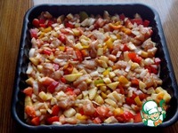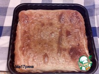 Выложить начинку в антипригарную форму (у меня 24*24). Смазывать форму не надо. |