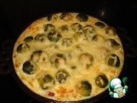 Смешать яйца, бульон, молоко, соль, перец, мускатный орех. Залить смесь в сковороду. Сыр натереть и посыпать сверху. |