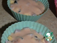 В формочки выложить по 1 ст. л. теста, сверху по 1 ст. л. начинки и полить 1 ст. л. заливки. Перебарщивать не стоит, этого будет вполне достаточно. |