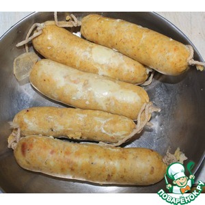 Набил колбаски. Пузырьки воздуха проткнул иглой |