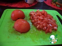 Помидор кладем в кипяток на минутку, потом в холодную воду. Снимаем шкурку с помидорок. Помидоры режем мелким кубиком. |