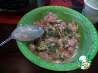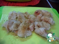 Предварительно размороженную рыбу режем средними кусочками. Добавим, при желании, немного приправы для рыбы. |