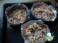 Готовое блюдо посыпаем отложенным зеленым луком. Прошу к столу! P.S. хотелось получить блюдо с гарниром, почистила 3 картофелины, порезала кружочками и положила под рыбу. Картофель-рыба-соус ;) |