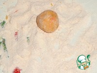 Муку смешиваем с куркумой. Из рыбного фарша сформировать шарики и обвалять в муке. |