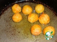 Рыбные шарики покатать по сковороде, чтобы они полностью покрылись растительным маслом и оставить в одном положении (поджариваются только снизу). Жарим шарики около 2 минут. |