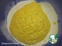 Разбиваем яйца и взбиваем. Соединияем яичную смесь с тестом. |