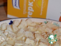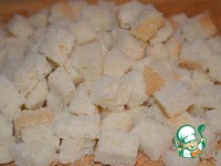С булки срезать всю корку и нарезать ее на кубики 1 см. |