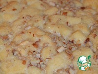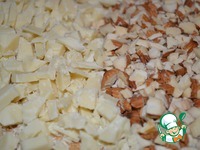 В миске соединить, нарезанную булку, геркулес, рубленный миндаль и шоколад. Залить полученной смесью и дать впитаться. |