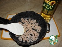 Для начинки:Обжарить креветки на растительном масле Идеал. ( по желанию, можно добавить 1 ст. л белого, сухого вина), ( я делала без вина) |