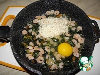 Когда овощи немного остынут, соединить их с креветками, добавить миндаль и сырое яйцо. |