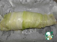 Взять форму ( постелить пергамент, смазать растительным маслом) И выложить на него в ряд листья лука-порея ( чтоб один, чуть заходил на другой) |