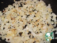 Лук чистим мелко режем и обжариваем до золотистого цвета в той же сковородке, где жарили картошку. Готовый лук равномерно выкладываем сверху картошки. |