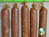 Добавить все специи к фаршу и мешать тщательно, постепенно добавляя воду, до поглощения всей свободной влаги и получения липкой консистенции фарша;