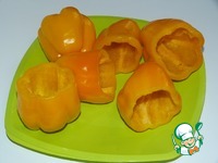 Перцы помыть. Срезать верхушки, затем удалить семена и перегородки. |