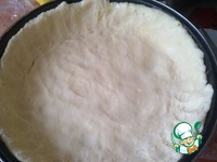 Смазать форму (у меня 25 см) сливочным маслом и распределить тесто, делая бортики. |