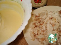 Рыбу отправляем в тесто и хорошо размешиваем. Кусочки отварной рыбы должны "раствориться" в тесте. Добавляем соду и размешиваем. |