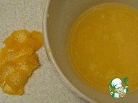 Апельсин тщательно моем. Срезаем цедру ( без белого слоя) с половины апельсина и тонко режем. Из апельсина выжимаем сок. |