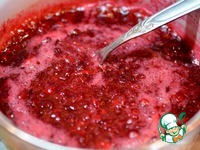 Бруснику помыть, обсушить. К 150 г ягод добавить 2 ст. л. сахара, измельчить блендером, дать закипеть, прокипятить 3 минуты. Затем остудить. У нас получилось что-то вроде брусничного варенья. |