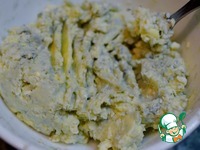 Далее выложить слой сырной массы из сыра с плесенью, равномерно распределить. |