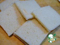 С кусочков хлеба срезать корочку и обрезать под размер формы. Форму застелить фольгой. |