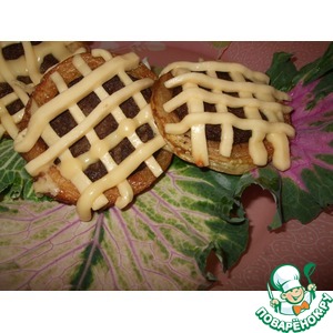 Делаем из сыра решётку на наших "котлетках" и ставим в микроволновку на пару минут. |