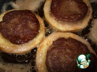 Переворачиваем и к середину кабачка кладём печёночный фарш. Жарим минутки 4-5. |