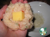 Из фарша сформировать лепешки, в середину каждой положить по кусочку твердого сыра. Сформировать котлету, с одной стороны обмакнуть в кунжут. |