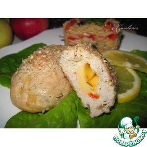 Описание: Ароматные, вкусные и полезные куриные котлетки с тающим сыром внутри запекаются в духовке. Добавление в фарш обжаренных овощей и яблока придает котлетам сочность и нежность.