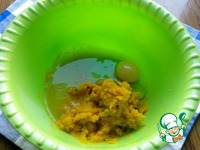 Тыкву пюрировать, добавить яйцо и 60 мл апельсинового сока (20 мл сока останется). Всё перемешать. |