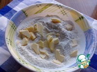 Добавить холодное сливочное масло, нарезанное небольшими кусочками. Перетереть массу в крошку. |
