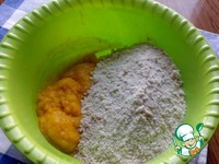 К смеси добавить готовое пюре из тыквы и апельсинового сока. Перемешать. |