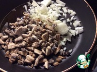 Теперь приступает к фаршу. В сковороде пережариваем в небольшом количестве масла шампиньоны и репчатый лук. Солим и перчим по вкусу. |