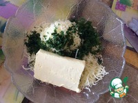 Смешать рубленную зелень, тертый сыр и сливочное масло |