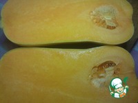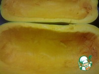 Удалить из тыквы мякоть, которую отложить в сторону, это понадобится позже. |