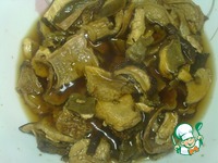 В горячей воде предварительно замачиваем белые грибы, в течение 10 минут. (Воду после замачивания грибов не выливать, она нам понадобится.) |