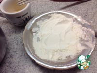 Второе яйцо взбиваем в маленькой мисочке. Тарелку положить муку. |
