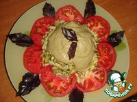 Сырный салат выложите горкой на помидоры и полейте зеленым соусом. Приятного аппетита! |