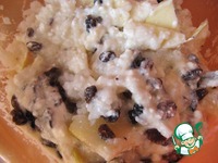 Все это, а так же сахар и ванилин добавить к смеси творога, риса и муки. |