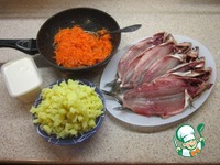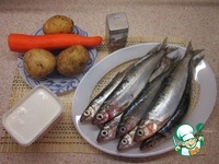 Итак имеем: обжаренную морковку, нарезанный мелкими кубиками картофель, филе рыбки с головой и хвостом и деревенские сливки. |
