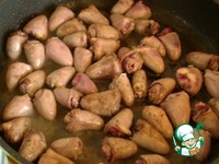 Отправляем сердечки на разогретую сковороду с оливковым маслом и жарим 10 минут. Затем выкладываем в мисочку и сохраняем теплыми. |
