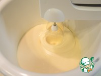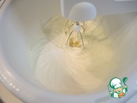 Яйца взбить с двумя видами сахара до светлой густой пены. |