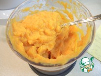 Тыкву при помощи блендера превратить в пюре и добавить к взбитым яйцам. Так же добавить растительное масло и растопленное сливочное. Перемешать. |