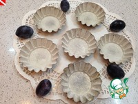 У меня осталось немного крема - я решила просто подать его в креманках. Формочки смазала сливочным маслом, обсыпала сахаром, уложила сливы и залила остатками крема. |