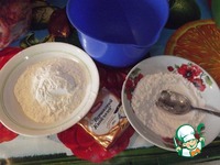 По чуть-чуть добывляем сахарную пудру (можно брать и сахар-песок, но в большенстве случаев он хрустит на зубах когда тесто готово). |