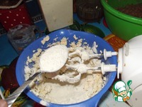 Постепенно добавляем муку, в конце уже начинае вымешивать руками. |