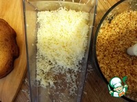 Пока тушится кролик, измельчить хлеб в комбайне с половиной натертого пармезана. |