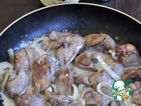 Лук почистить, нарезать полукольцами, готовить до прозрачности в небольшом количестве оливкового масла. Добавить печень, когда печень побелеет, влить пиво и готовить, пока пиво не выпарится. |