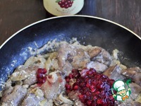 Когда сливочный соус закипит, добавить 2 ст. л. брусничного соуса. Хорошо перемешать, посолить, поперчить. |