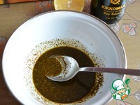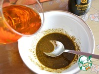 Готовим заливку. В миске смешиваем приправу, соевый соус, сок лимона, растительное масло. Хорошо перемешиваем. |