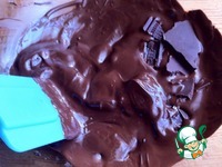 Шоколад поломать и поставить на водяную баню. Когда растопится примерно три четверти, снять с бани и хорошо размешать до однородности. |